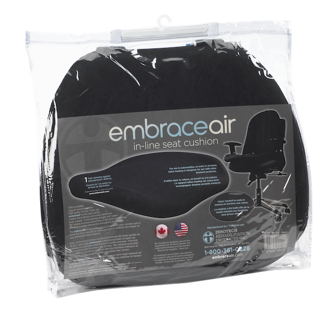 With a molded natural wood frame and high quality ‘30-year’ foam, our In-Line Seating cradles the buttocks and evenly distributes body weight. Contoured leg troughs and overflow edges reduce weight on bony prominences. Ideal when your current seat is either too hard, too soft, or when you want to stabilize your back support height. In-Line Seating can be attached to any of our "Embrace" type back supports with the included Velcro straps. Remember, fabric treated to make it immune to fungus bacteria and odor. All prices are in Canadian Dollars.